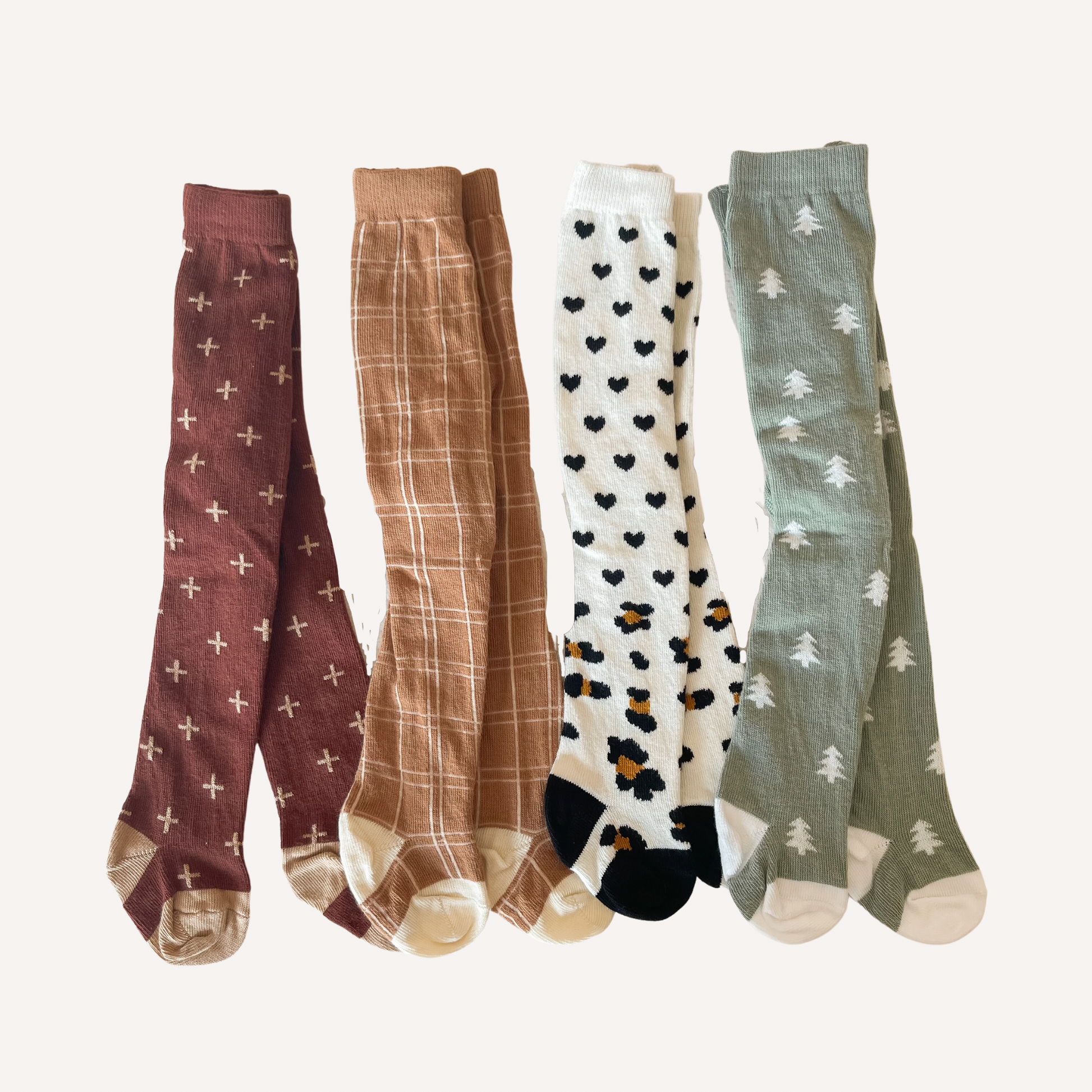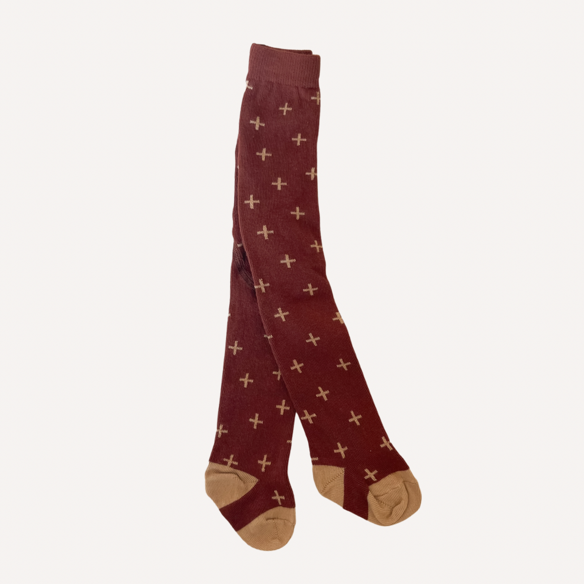 This tight is the perfect shade of red and has soft tan plus signs throughout. 80% cotton, 17% polyamide, 3% elastane. Made in Latvia