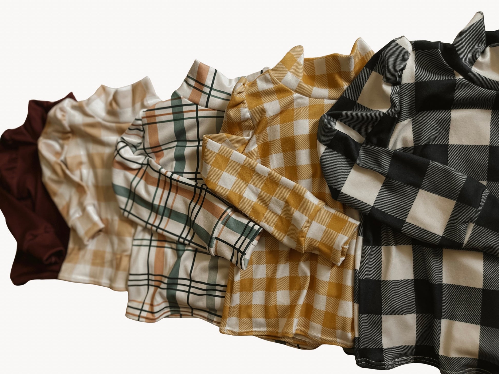 Soft, stylish, and perfect for fall! Our handmade Puffed Sleeve Tops are made from cozy, heavy-weight DBP and come in five beautiful colors and prints. Featuring a classic mock neck and puffed long sleeves finished with cuffs, this top adds a charming touch to any outfit.